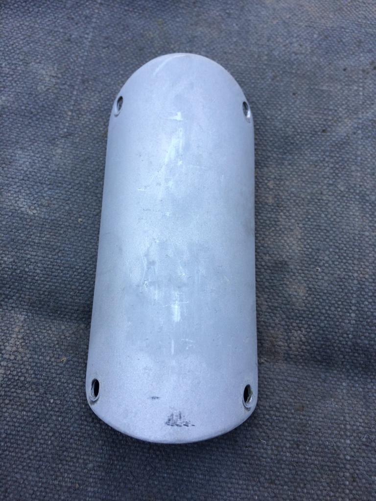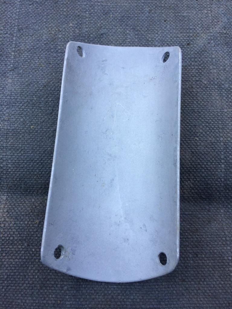 The question here is what might the original finish of this component have been? Usually they were polished. I feel certain that it wouldn’t have been blasted – some of the visible dings have also been subjected to this treatment indicating that the blasting was undertaken later on in the bike’s life. As the finish/presentation was a very important aspect of this early Grey Flash I suspect this plate would have been anodised along with many other of the aluminium parts. Re-anodising might be one answer or perhaps carefully removing the blasted finish with a suitable grade of wire wool. We need to have a careful think about this before coming to a decision.