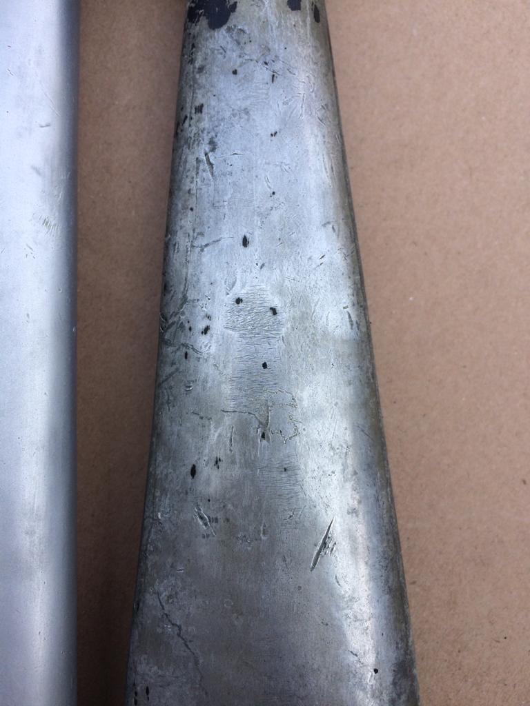 This explains why 2751’s fork legs look so good after all these years. In addition, at some time they were painted (Bert removed two layers of different paint) which added a further level of protection. And it’s very fortunate that whomever painted them, refrained from roughing the metal surface to provide a “key” for the paint.