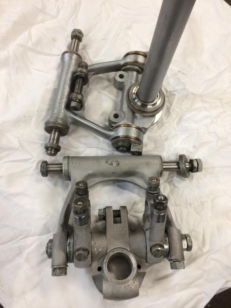 Now that we have some parts back from the platers it’s possible to finally make a start on the assembly process. The top and bottom forks links were a good place to begin and so Bert took his time building them up.