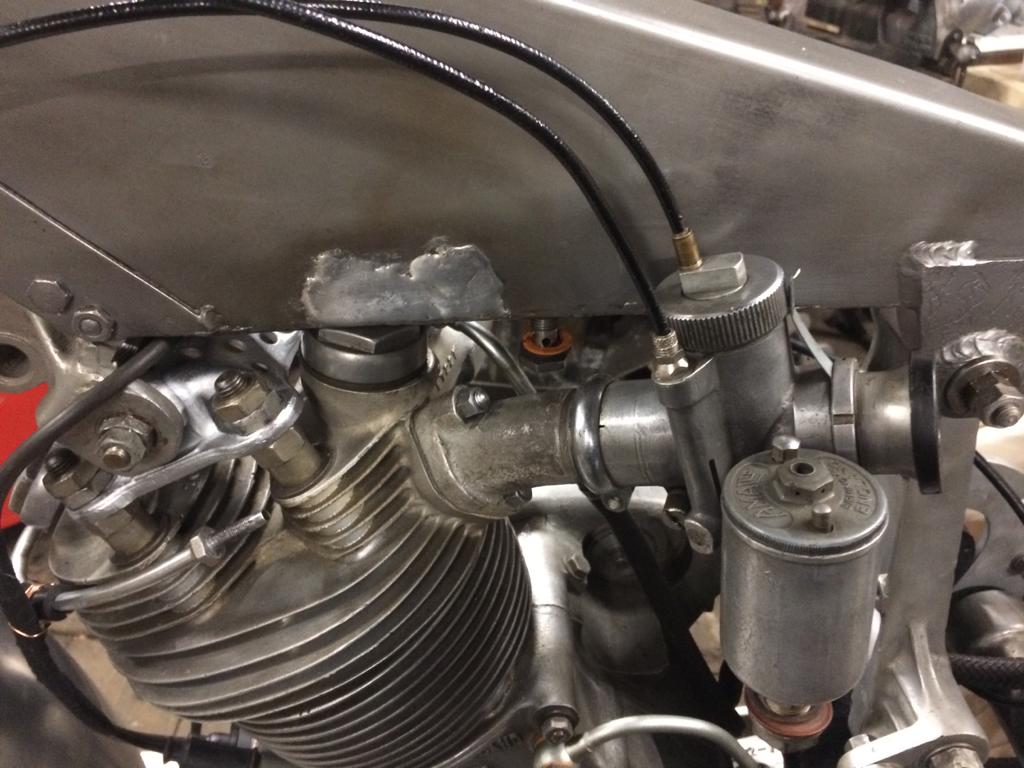 Running the throttle cable over the brake lever like that looks weird. In-period some were set up like this though and it’s actually the best route for the cable. We might revert to running it behind the lever later on – it can be changed easily enough.