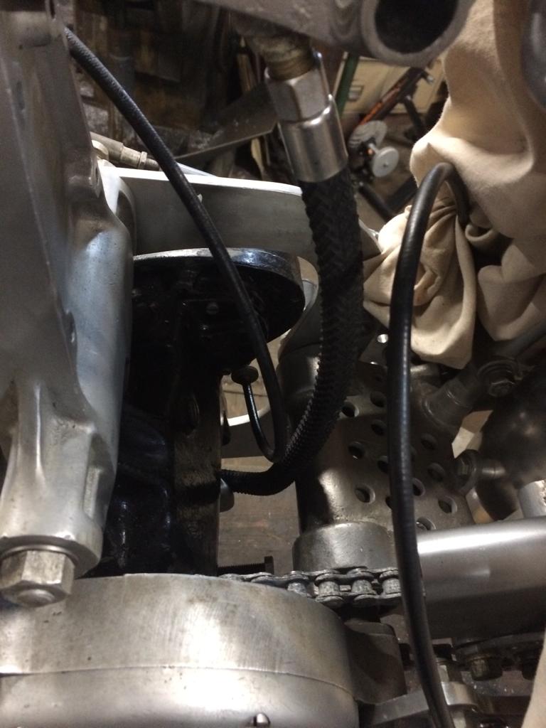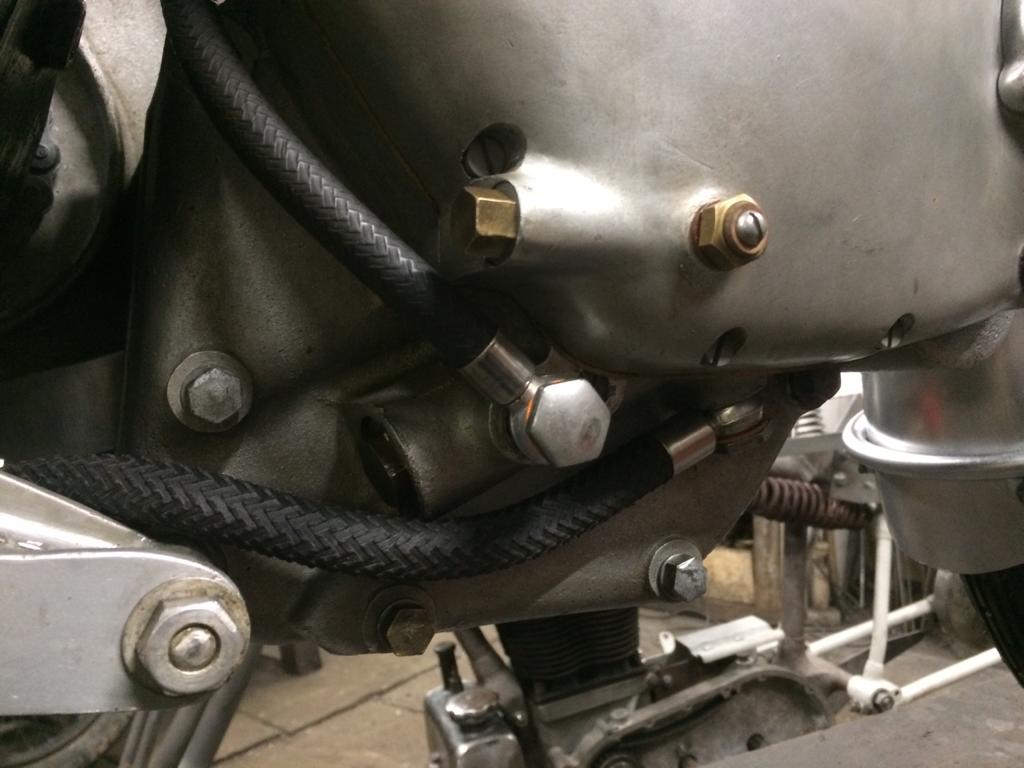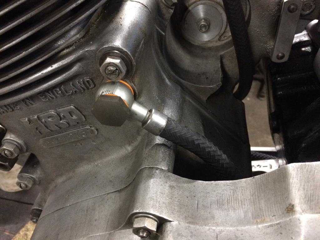 The correct run of the oil feed pipe was determined to be as above. We decided to stick with 3/8″ pipe for this as all the feed fittings present on the machine were sized to accommodate this ID – and many of them appeared ancient and possibly original to the bike. Below some shots of the other pipework in place.