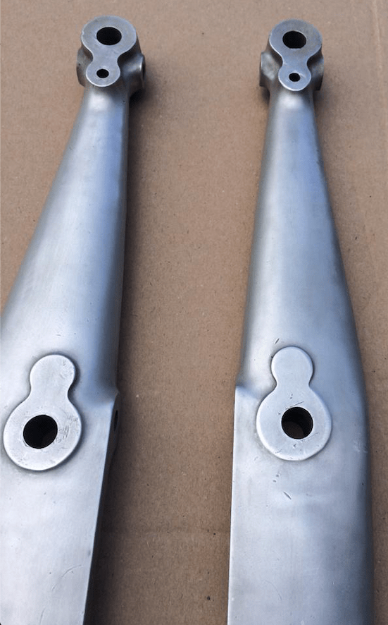 I’m finally able to report that the fork blades are stripped of all of their paint. In fact, all parts have now been stripped but I’m going to start with the forks as they are an important reference point for this part of the restoration. We know, without a shadow of a doubt, that the forks are the original ones that 2751 left the factory with. We know this because of the many unique features found on the Grey Flash Girdraulic fork legs that differentiate them from Vincent Black Lightning items. The bike was exported new to New Zealand; the only Grey Flash exported new to that part of the world. For the bike to have acquired a genuine replacement Grey Flash fork leg would have been nigh on impossible. So the legs have to be original to the machine and, under the paint, we are likely to find the anodised finish listed on the Works Record Card. That is, unless it was destroyed by someone trying to obtain a “key” for said paint…