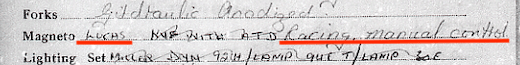 The Works Order Form mentioned that the magneto was actually a Lucas.