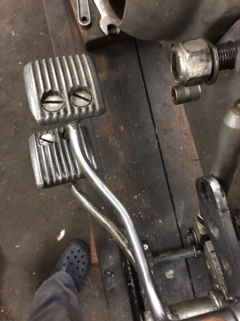 As acquired, 2751 featured a mix of foot controls. We have looked at each component carefully to assess provenance and made a decision whether to employ the part in the restoration, replace with the correct item (I have a stock of NOS racing foot control components) or remanufacture to correct specifications.